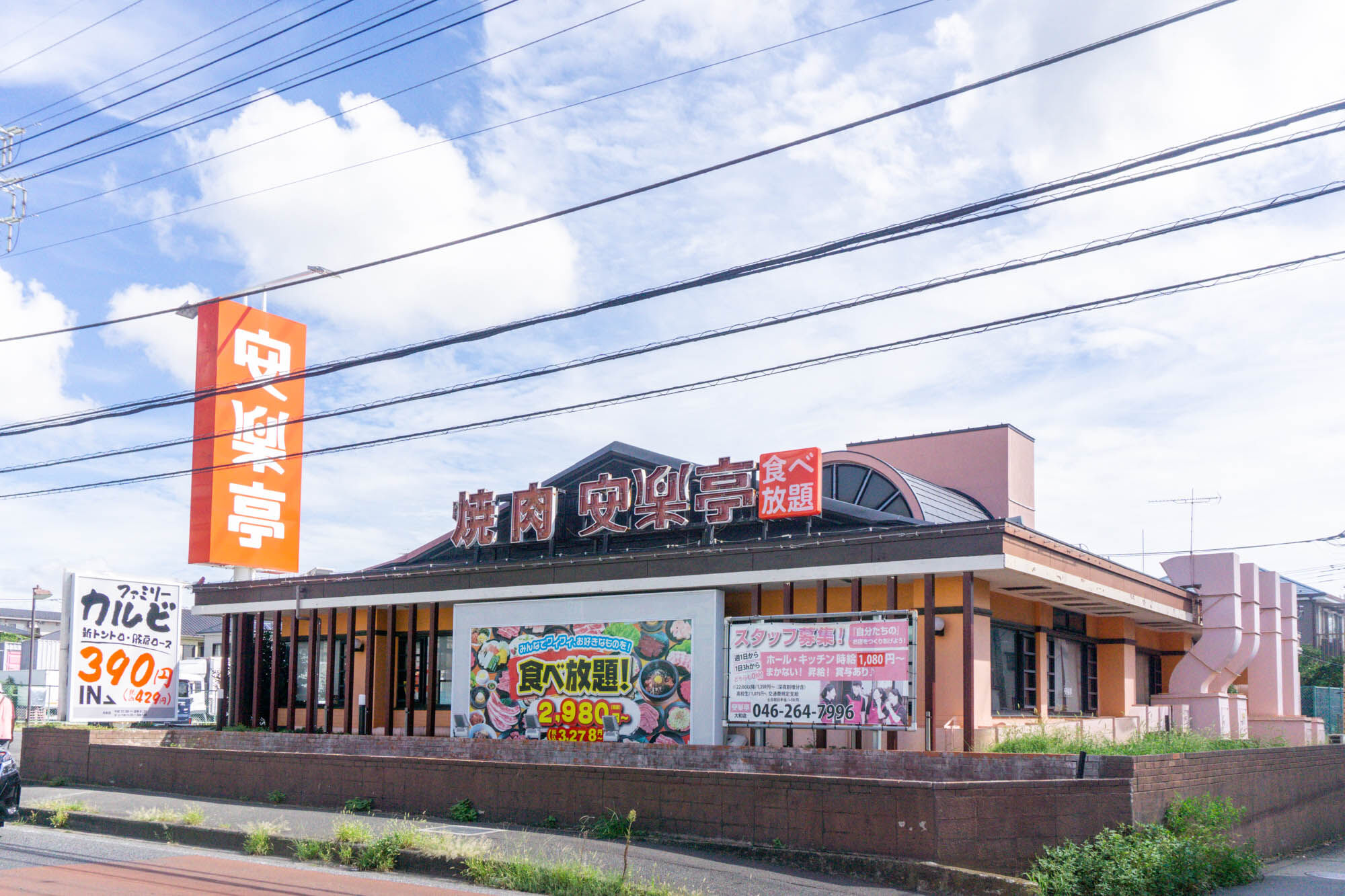 藤沢街道ぞい深見台の焼肉店「安楽亭」の看板かわってる