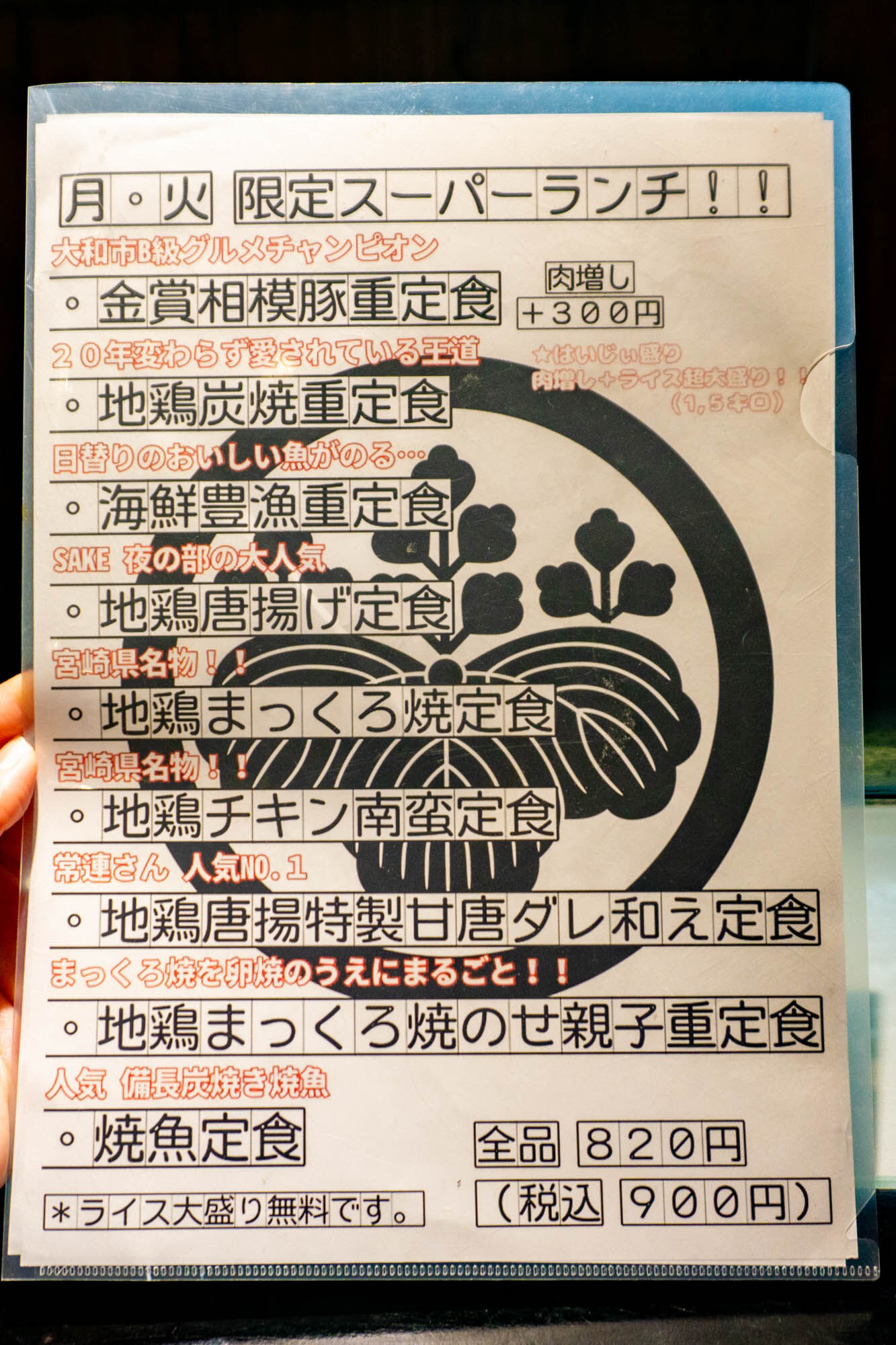 このお店は、以前お笑い芸人のはいじぃさんも来ており、その時に食べた「金賞相模豚重(肉増し特盛)」が『はいじぃ盛り』とも呼ばれ、メニューにも載っています。