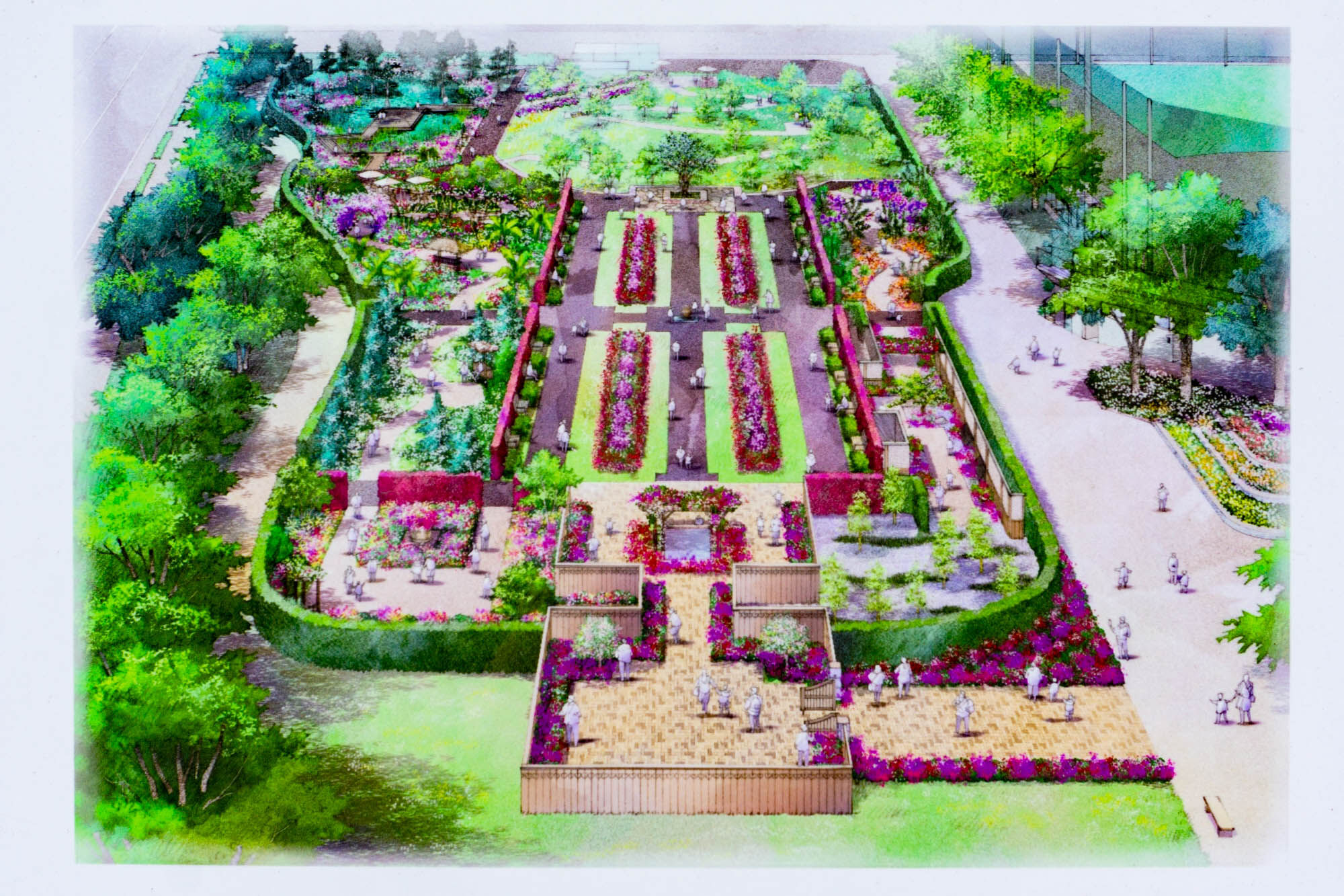 工事は北側エリアから進め、ローズガーデンのオープンは2024年度を予定しているみたい。
