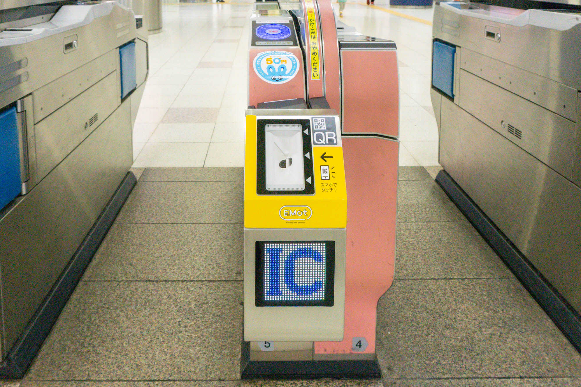 小田急沿線の改札に「EMot」QRリーダーが設置されてる