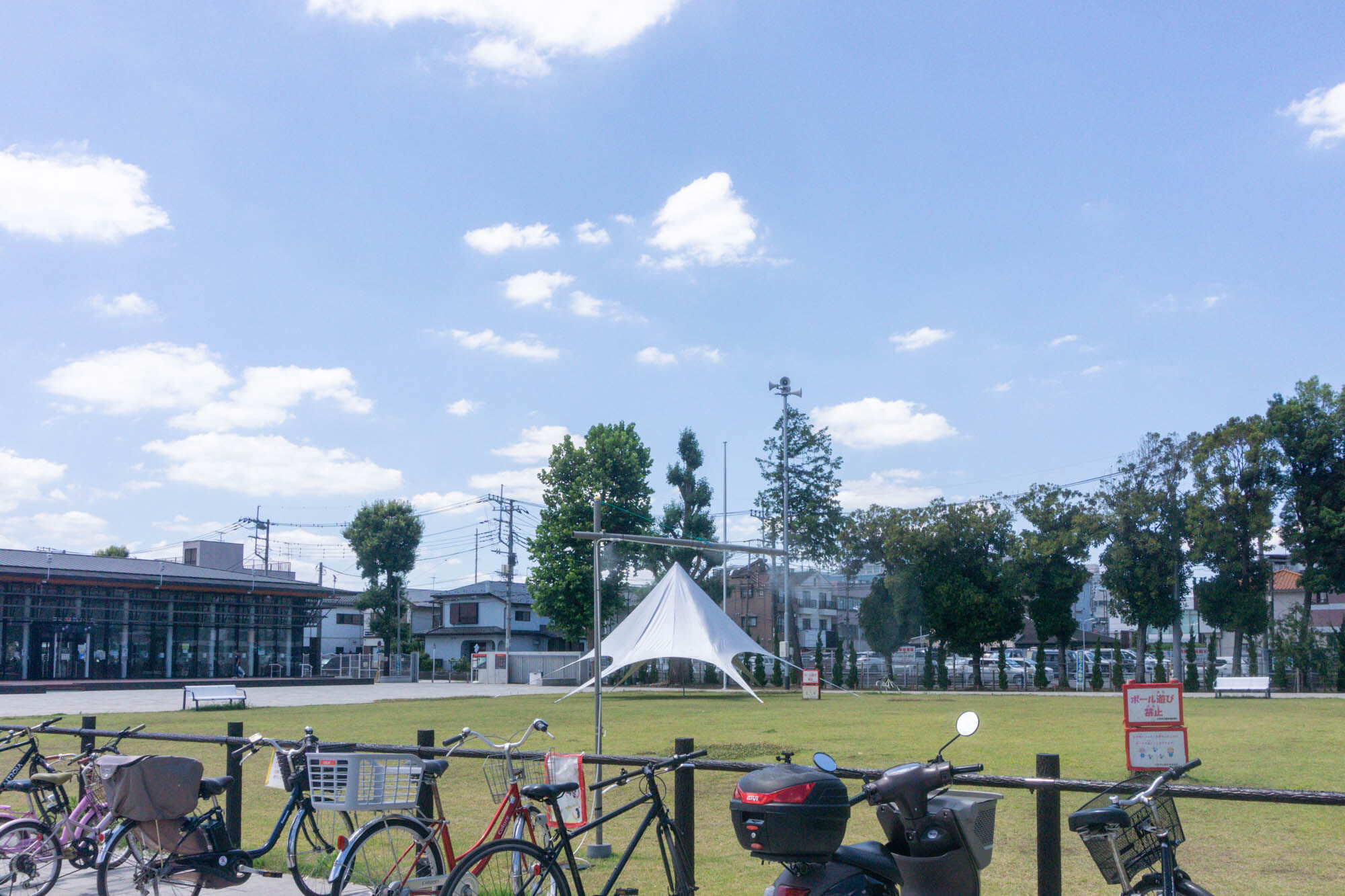 やまと公園にタープテントが設置されています。