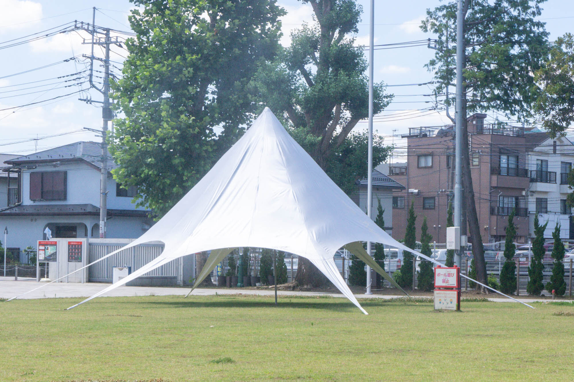 やまと公園にタープテント設置されてる