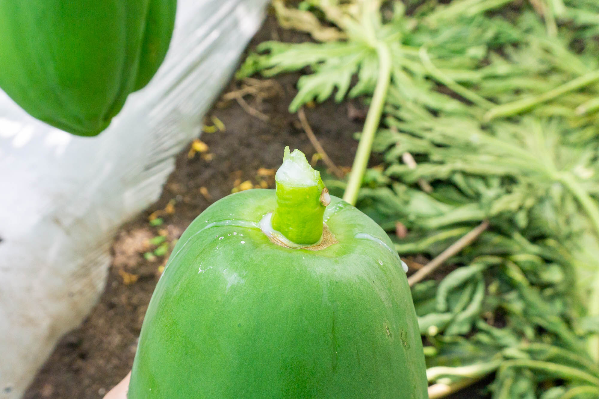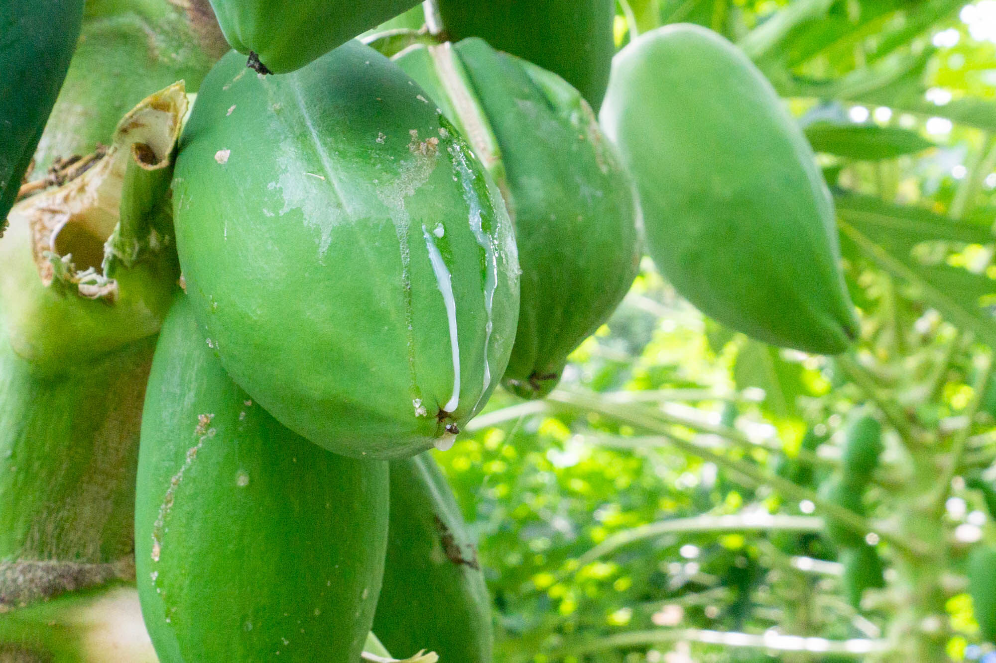 茎の写真でもでてましたが、青パパイヤは傷をつけると中から白い液体がわんさかでてきます。