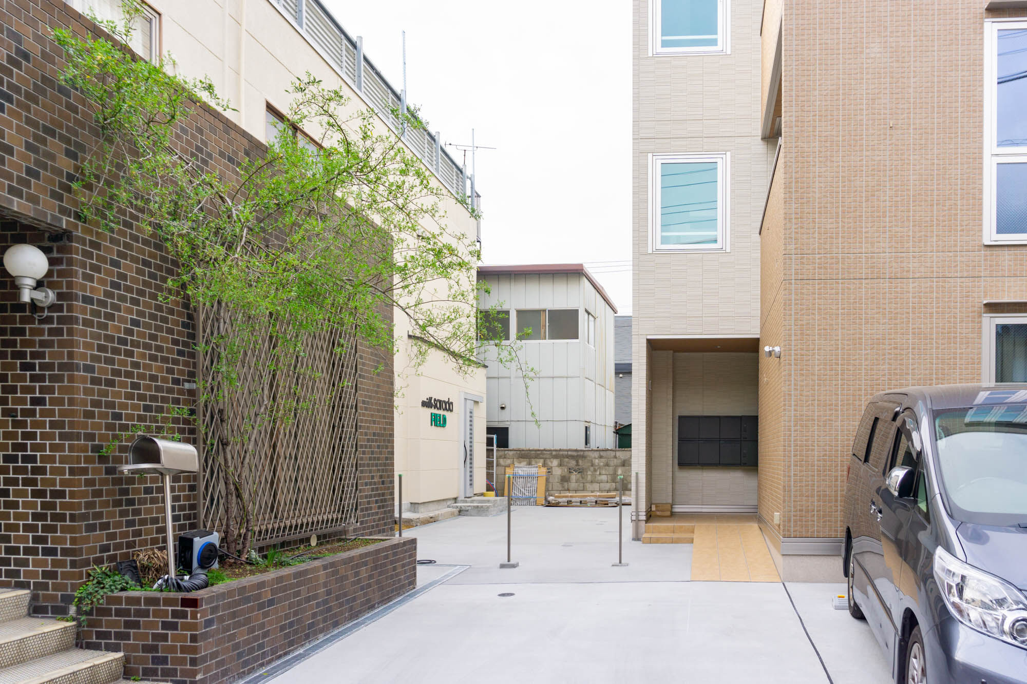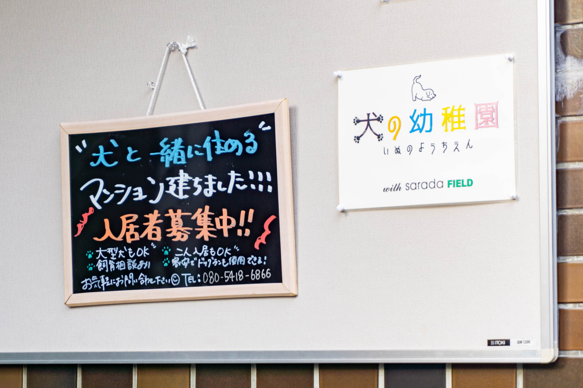 with sarada FIELDの入り口には入居者募集中の看板がありました。