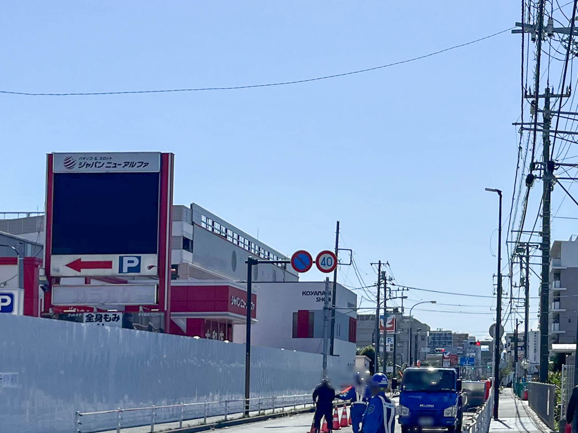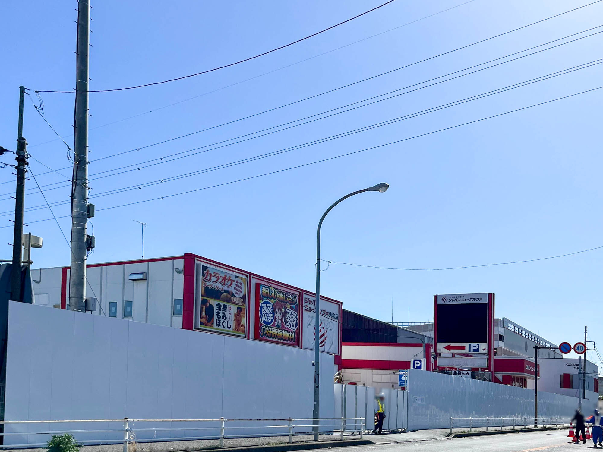 厚木街道ぞい下鶴間の「ドヌオス 鶴間店」と「ジャパンニューアルファ 大和店」と「全身もみほぐし ゆらく」があったところで工事をしています。