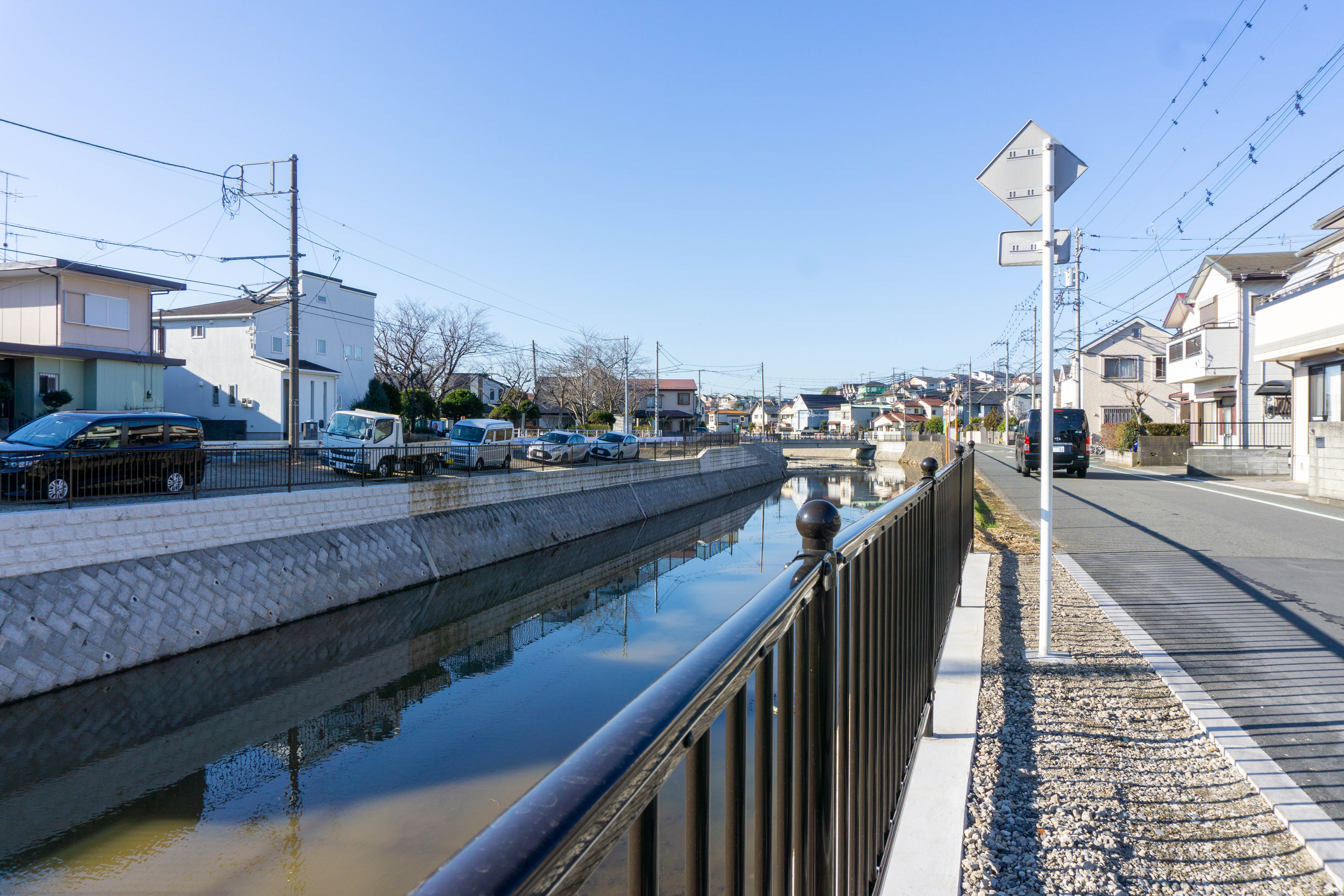 反対側は住宅街が広がっています。