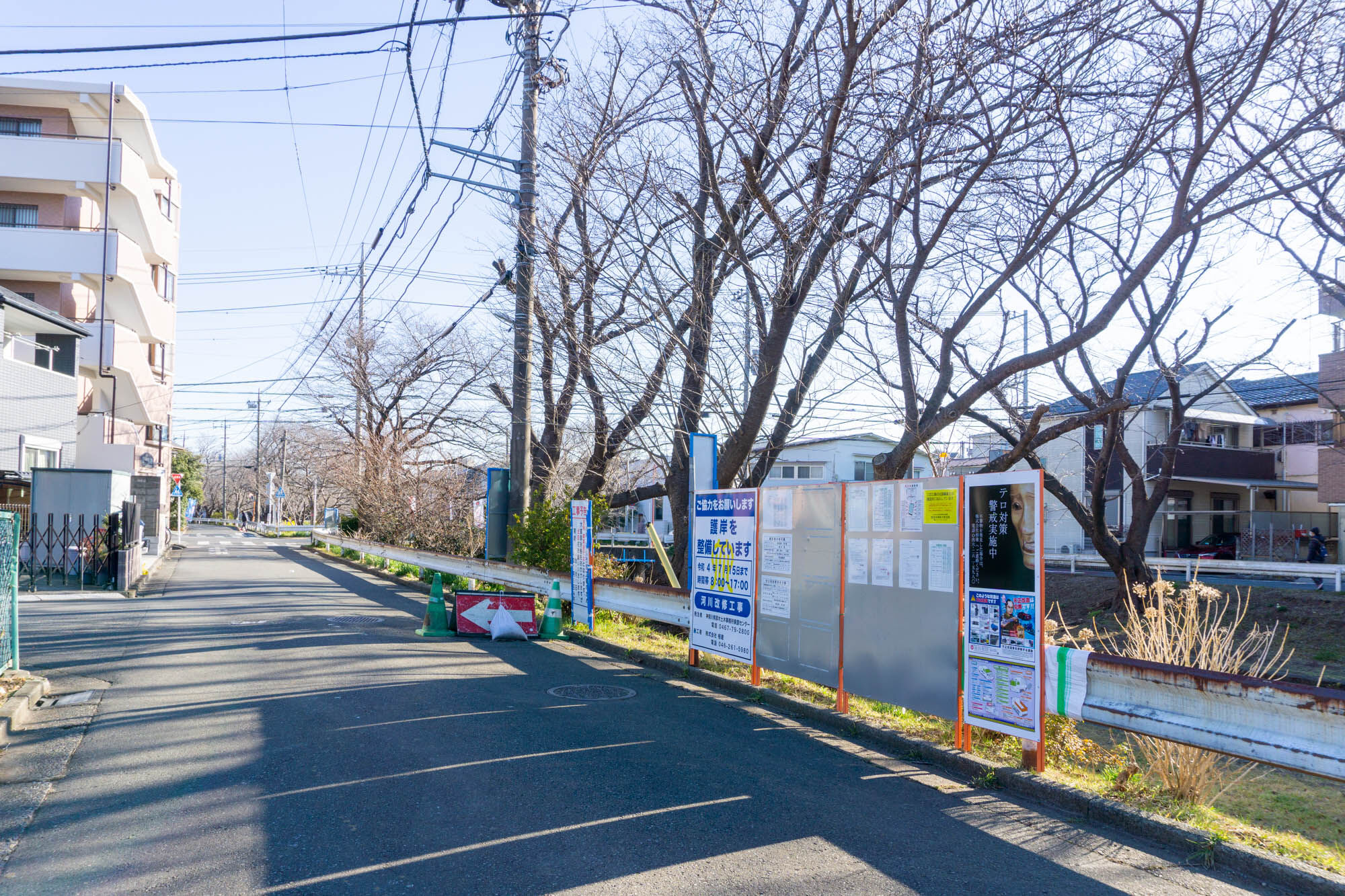 引地川の福田あたりで護岸整備工事してる。桜は植え直し
