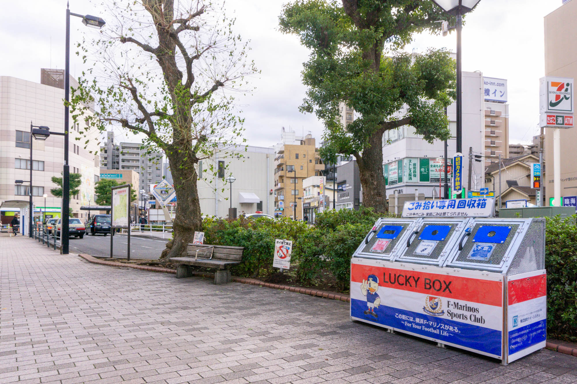 大和駅ちかくにごみ拾い専用回収箱が設置されてる