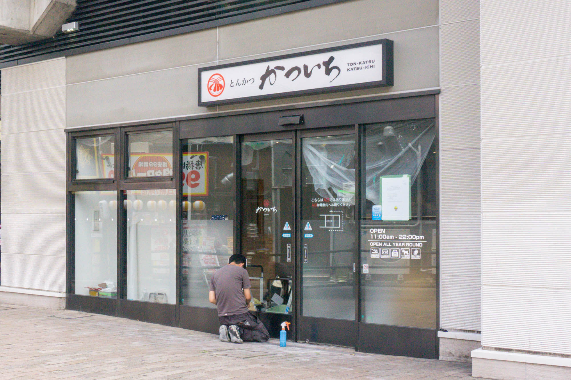 小田急マルシェ大和内のとんかつ店「かついち 大和店」があったところで工事をしています。