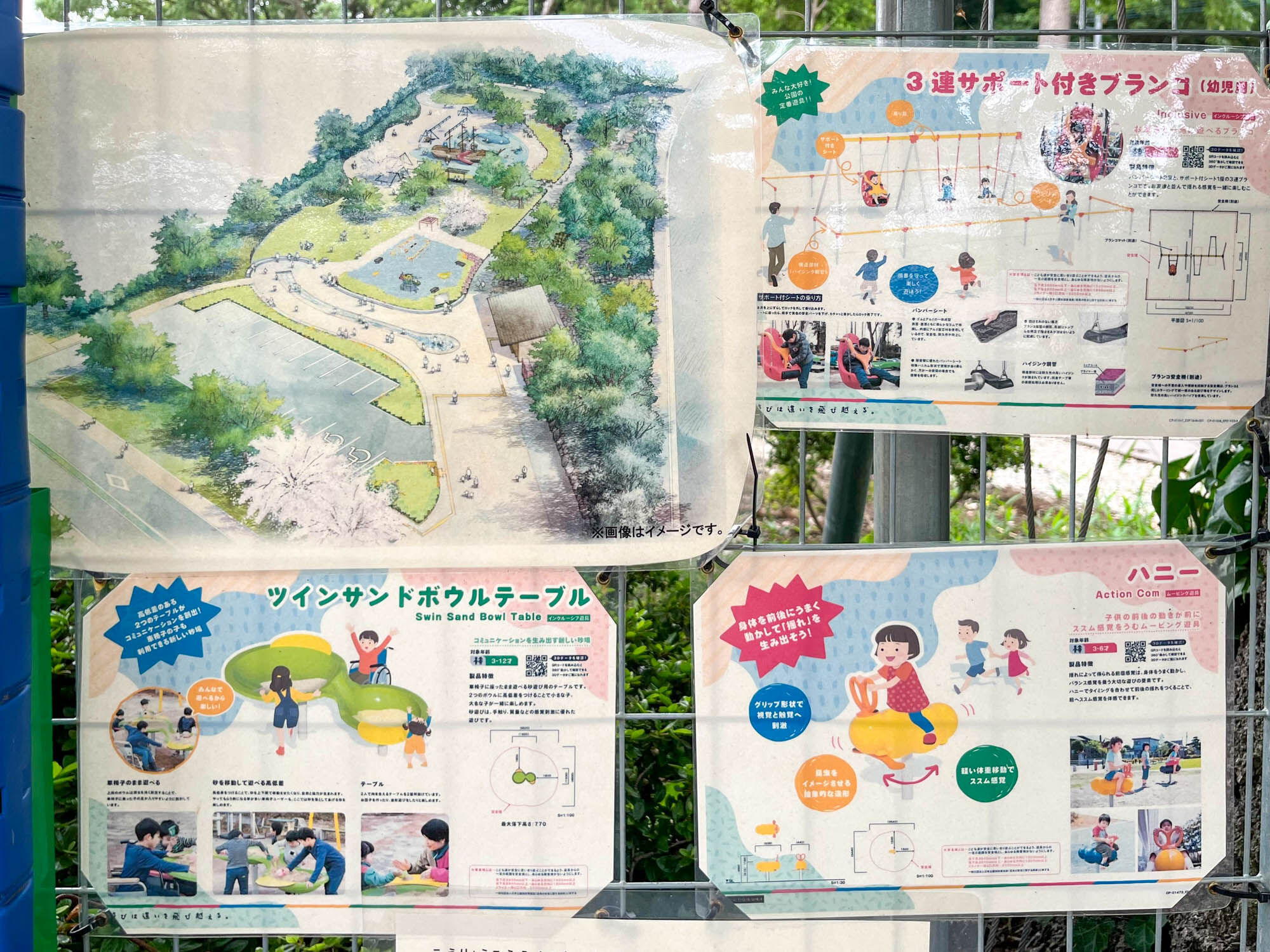 サポート付きブランコやボウルテーブルなど、子どもも楽しめる遊具が増えそうな予感です。