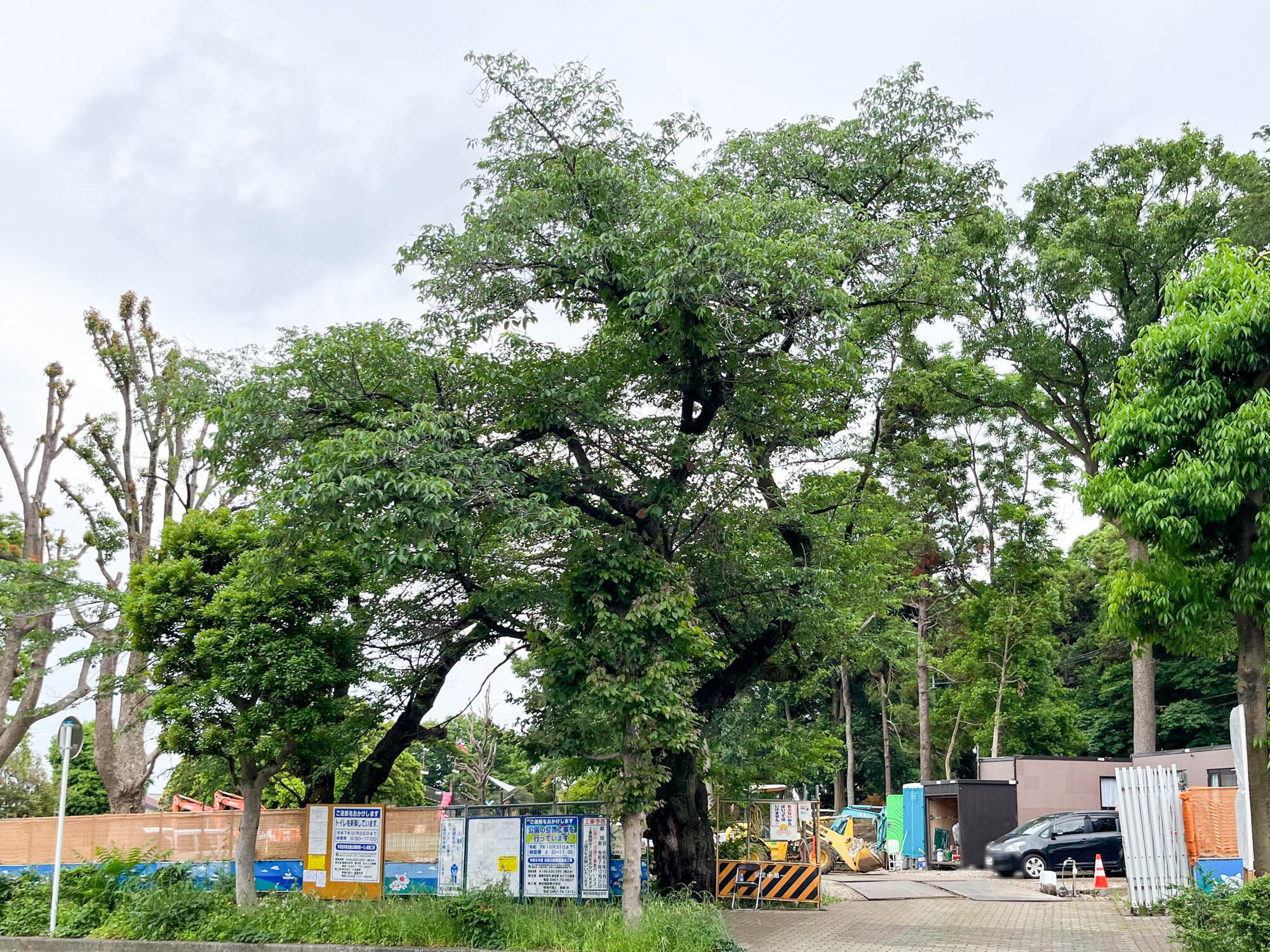 光陵公園は北側と南側が道で分かれており、写真左側が工事中の北側エリアで、道を挟んだ向かい側が南側エリアです。