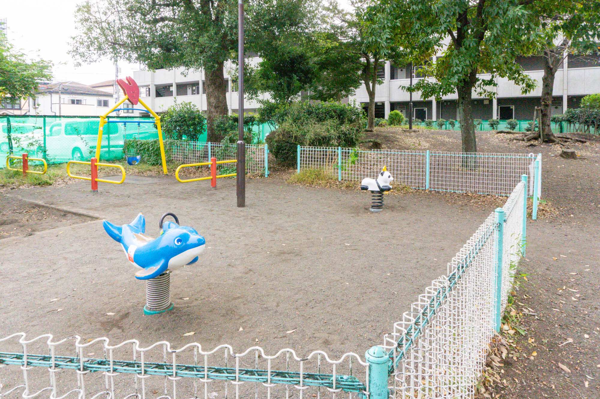 設置予定場所はこのあたりみたい。スイング遊具とのことなので、写真のイルカやパンダのサイズ感でしょうか。