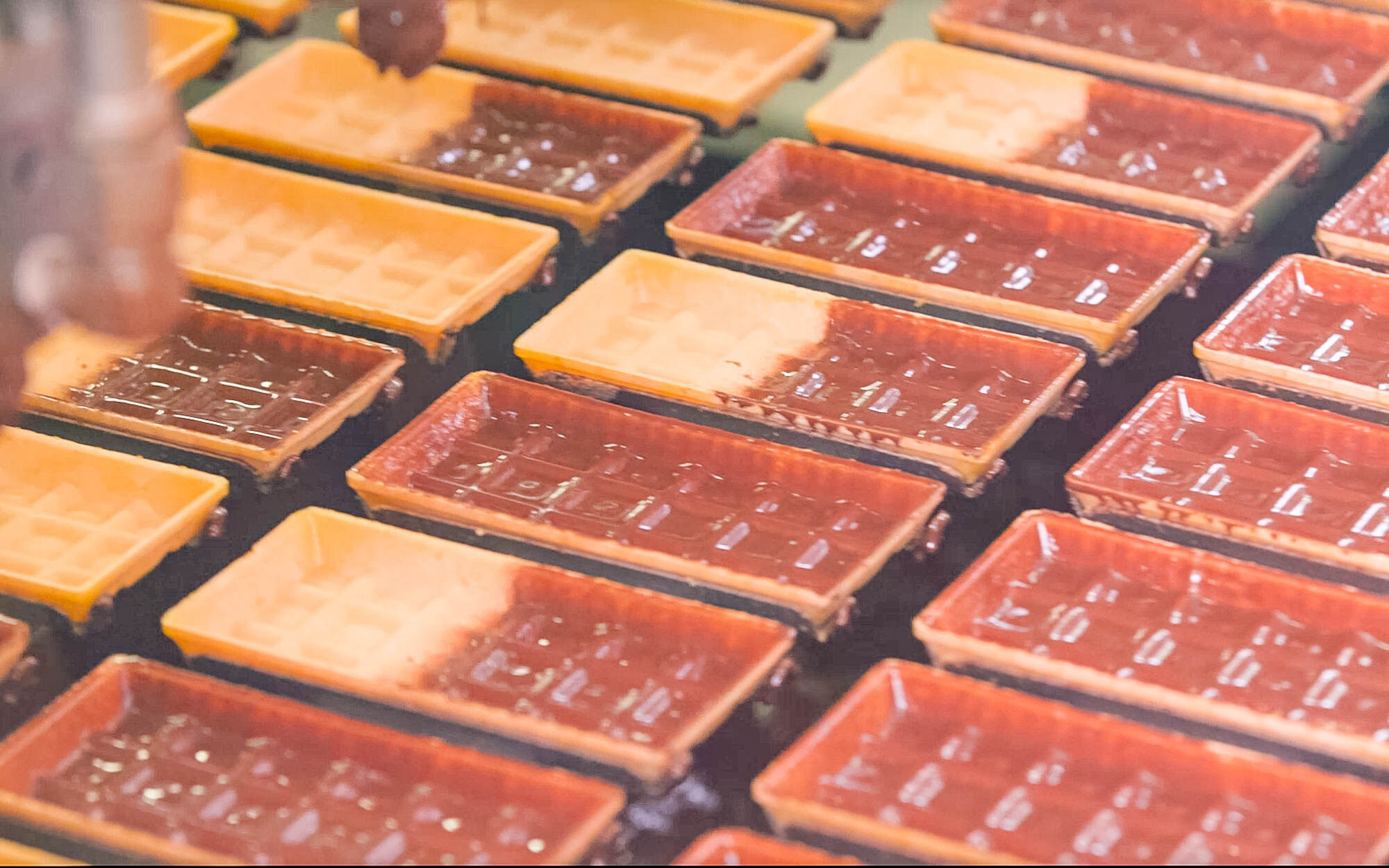 一体どの様にしてあのパリパリのチョコモナカジャンボができているのか、ご覧ください!