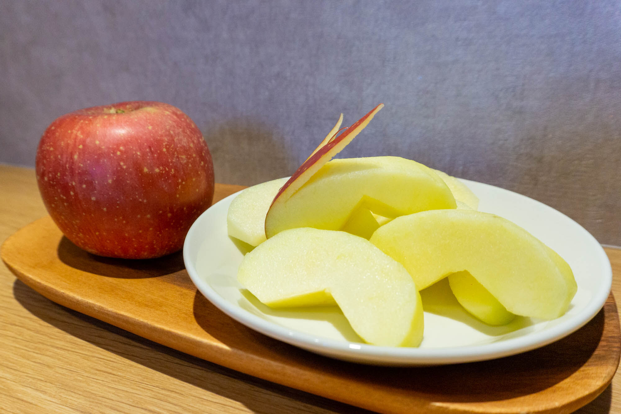 ワックスなし&小ぶりのりんごなので、欧米風にまるかじりスタイルもできるのでは。