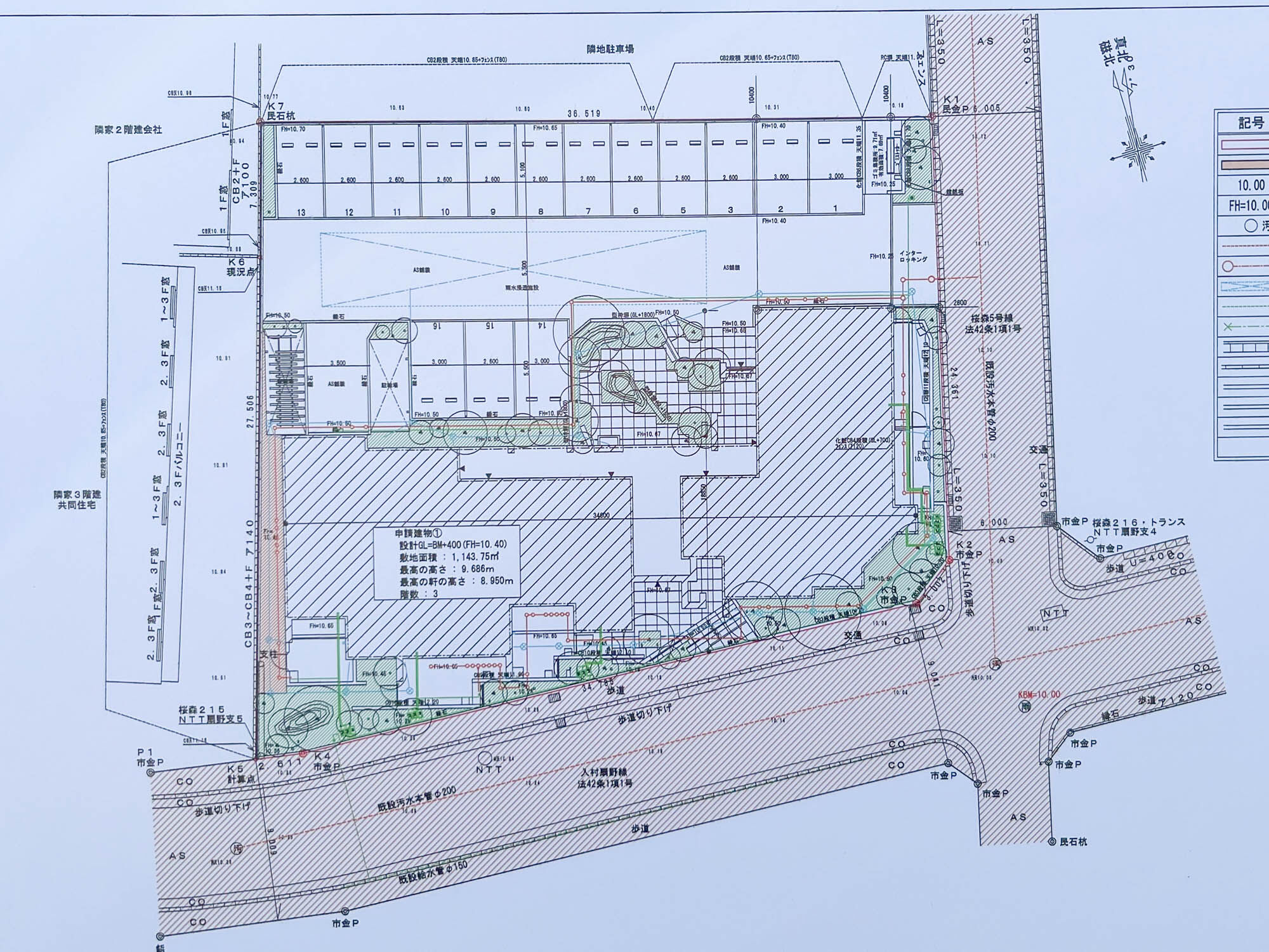現地の計画図によると、駐車場16台、駐輪場も備えたアパートのよう。