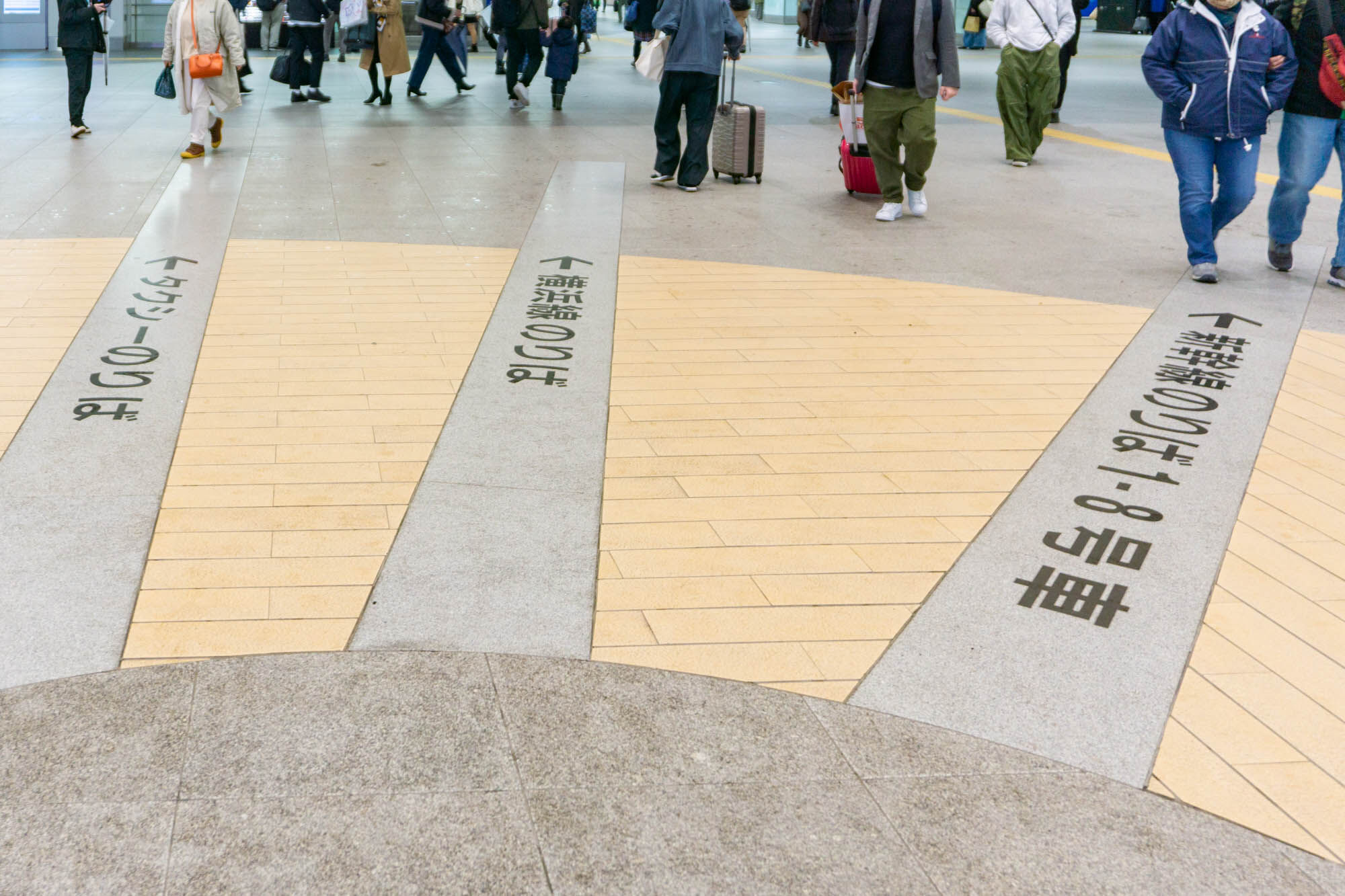 駅構内に入ってすぐの足元には各方面への案内表示が。